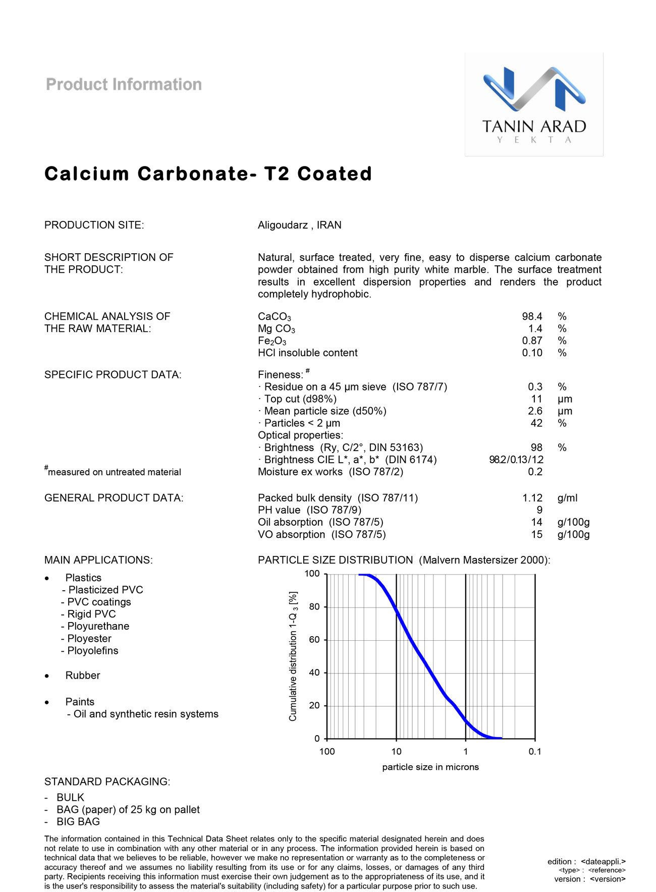 - کربنات کلسیم کوتد 16 میکرون با کد T4 plus
